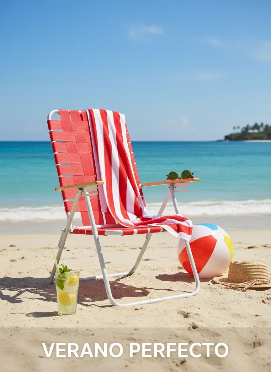 Fabricada con estructura de aluminio liviano, es resistente, duradera y fácil de transportar. Su respaldo reclinable te invita a encontrar tu posición perfecta, ya sea para leer, relajarte o simplemente cerrar los ojos y desconectar.