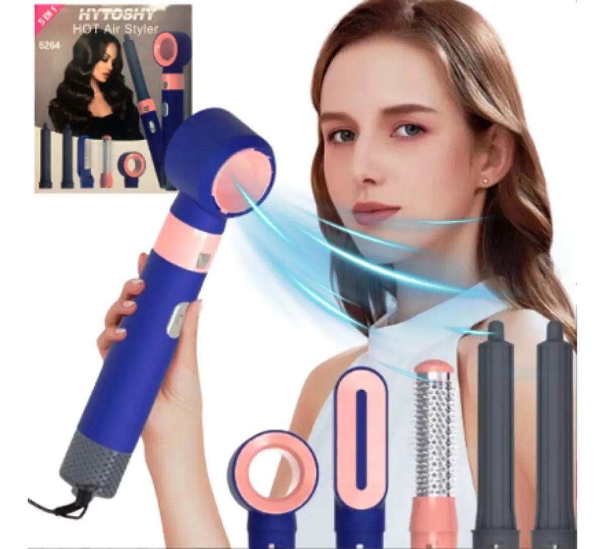 - 5 accesorios intercambiables: cepillo recto, cepillo brushing, buclera hacia la derecha y hacia la izquierda, pre moldeado. (Ninguno es giratorio)